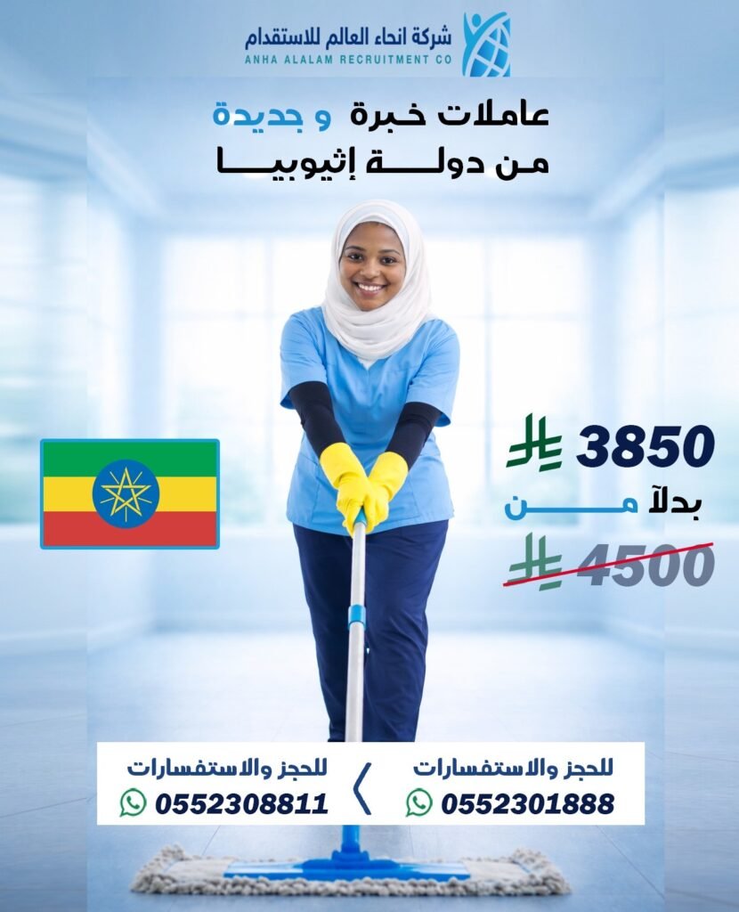 استقدام عاملات من إثيوبيا في السعودية | مميزات العاملة المنزلية الإثيوبية + حجز سريع 0552308811