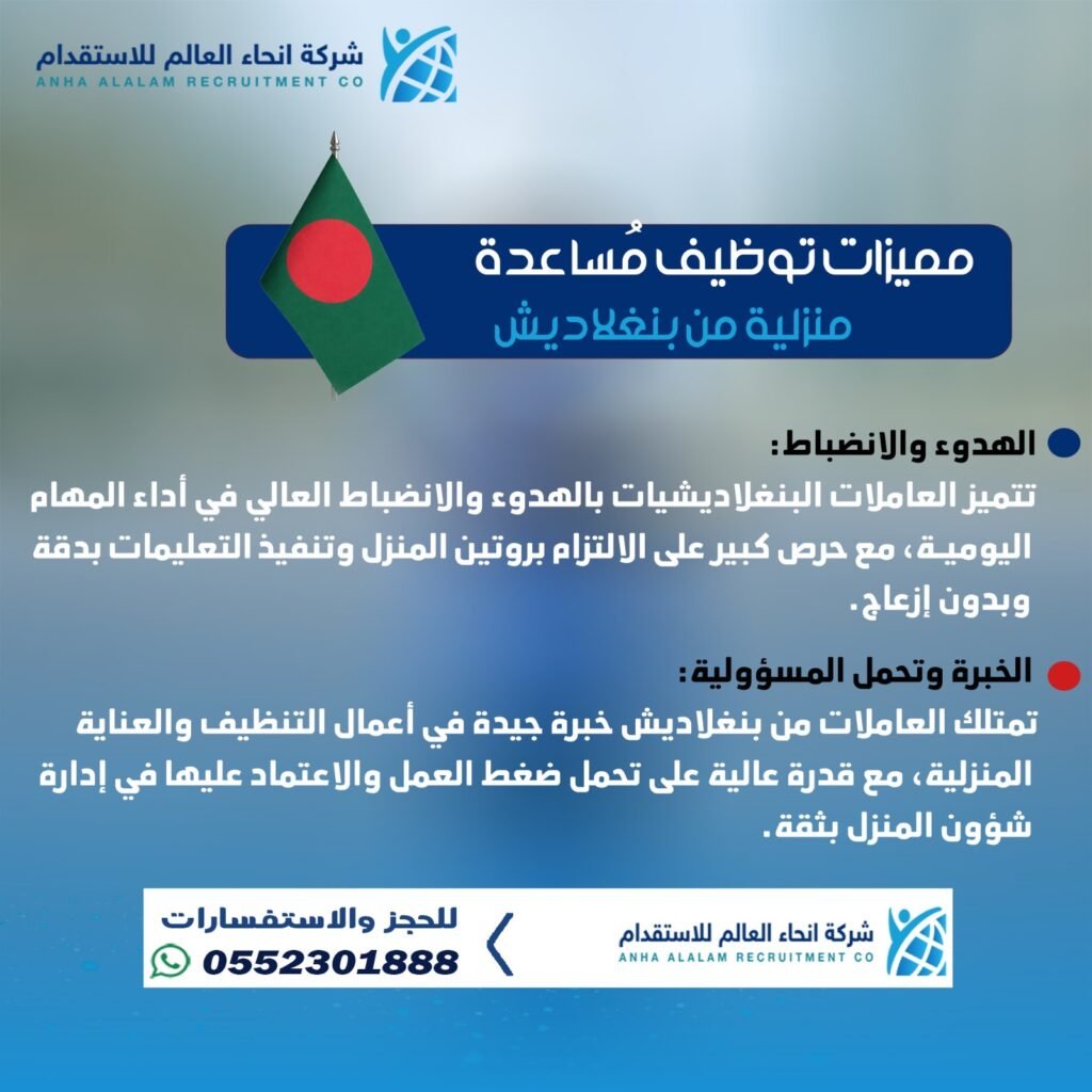 استقدام من بنغلاديش: أفضل خيار لراحة بيتك في السعودية 2026 لو أنت تدور على استقدام عاملة منزلية تريحك فعلاً وتكون